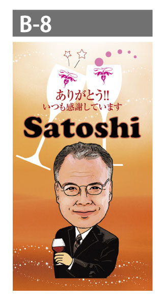 3年前に、還暦祝いで黒色ラベルで、ワインの似顔絵を作って頂きました。